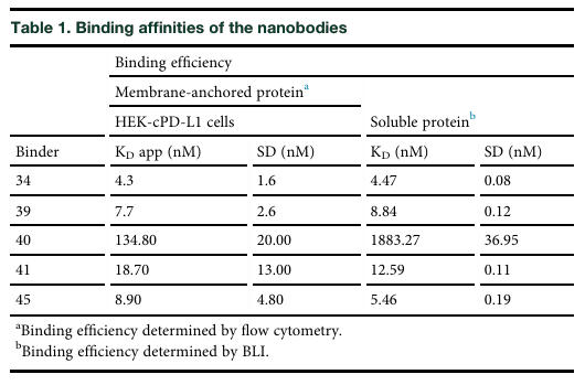 图2:纳米抗体构建体与膜锚定cPD-L1的结合