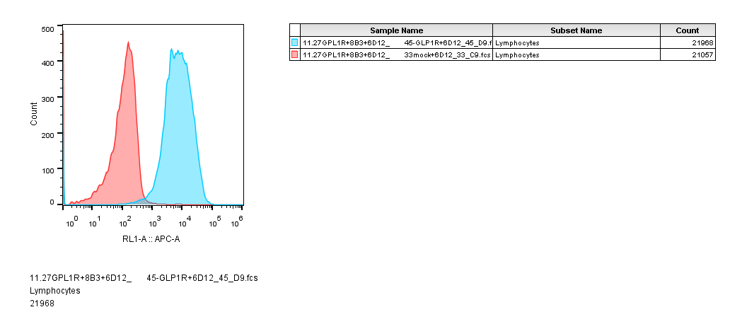 纳博生命Anti GLP-1R Nanobody靶点结合检测         FACS:Anti-GLP1R antibody (MPC240001) at 1/3000 dilution