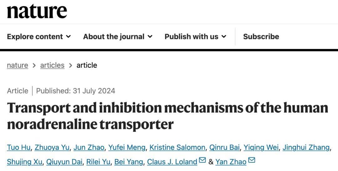 [7]Hu T, Yu Z, Zhao J, Meng Y, Salomon K, Bai Q, Wei Y, Zhang J, Xu S, Dai Q, Yu R, Yang B, Loland CJ, Zhao Y. Transport and inhibition mechanisms of the human noradrenaline transporter. Nature. 2024 Aug;632(8026):930-937. doi: 10.1038/s41586-024-07638-z. Epub 2024 Jul 31. PMID: 39085602.