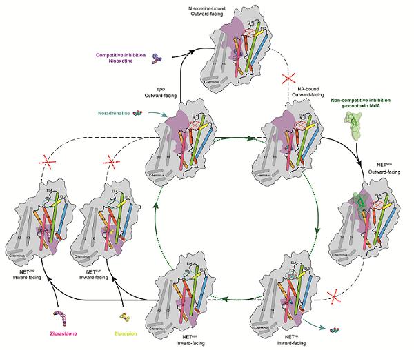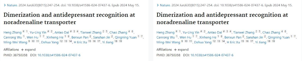 而观察近期除上述研究以外,早至5月15日,由中科院上海药研所徐华强课题组、杨德华课题组和临港实验室蒋轶课题组合作完成破解NET同源二聚化及转运调控机制。8月14日,中国医学科学院药物研究所吴惊香团队解析人源去甲肾上腺素转运体(hNET)进一步地揭示了以hNET为靶点的药物设计策略[8]。