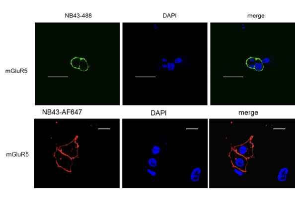 mGluR5纳米抗体NB43标记AF488或者AF647,可供不同的实验要求的选择: